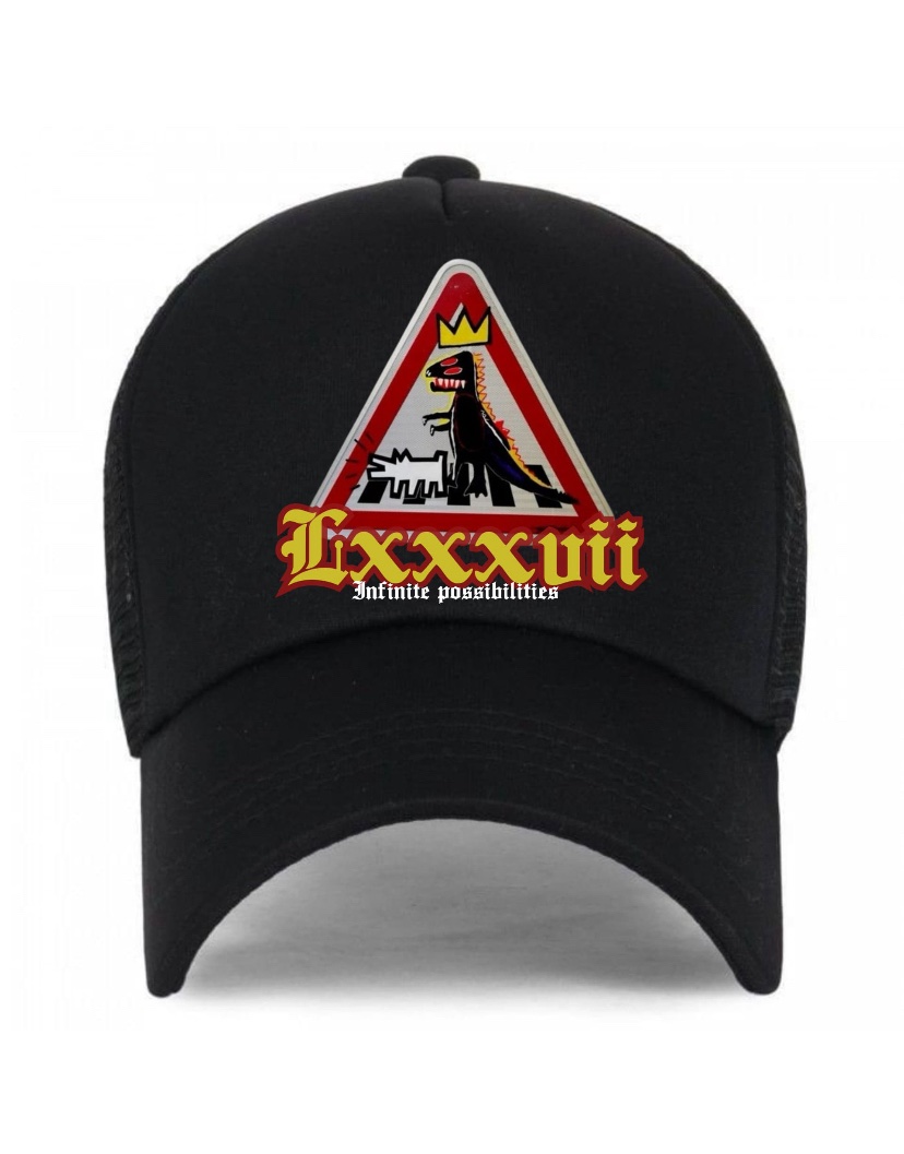 Not just a hat — a statement. The Limitless Possibility trucker hat redefines streetwear with an unapologetically daring mix of symbols and ideas. Featuring Roman numerals as a timeless nod to legacy, a dinosaur warning sign that captures raw energy, a zebra crossing motif representing movement and transitions, and a dog graphic symbolizing loyalty and grit — this piece is built to spark conversation.
