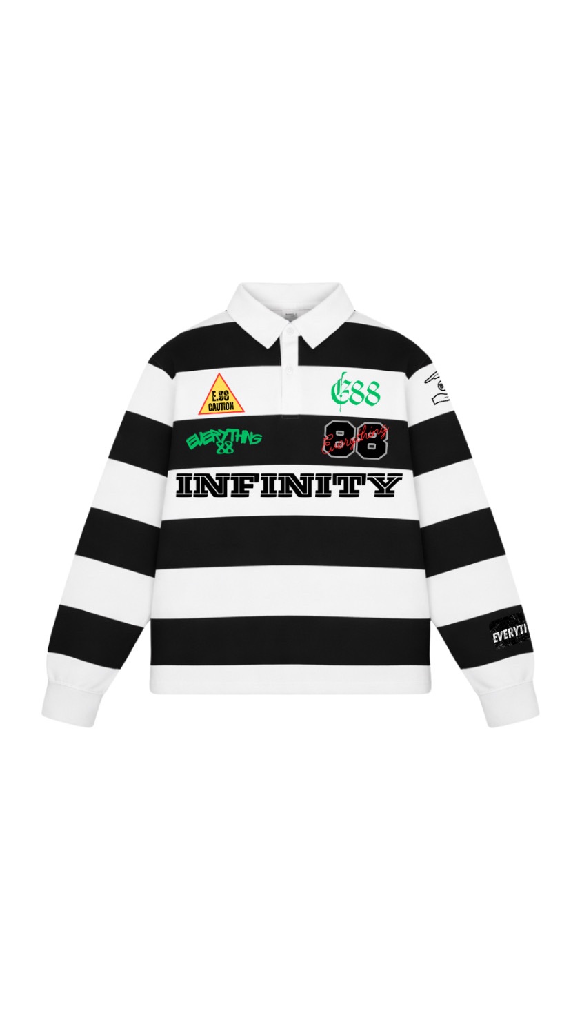The wristbands are cut in one piece and finished with a tonal binding for a seamless look. Along the sleeves and chest lies a series of micro-printed glyphs and linear motifs, done in a multi colored ink that catches light at angles — minimal yet deliberate. The placket is reinforced beneath with hidden taping to ensure it sits flat